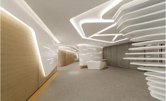 流動的曲線自然地集成于工作空間中,締造舒適的環境使人放鬆心情,透過線條、色彩及光線作功能分隔,令人享受空間的使用趣味,得以充分地釋放與滿足,提升心理素質、完善人性互動,達到人、物與空間的和諧。
