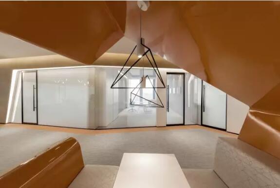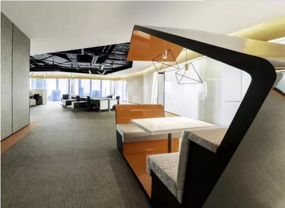 設計師把橘色滲入空間以提升溫度,創造有活力的辦公環境從而滿足人的物質和精神需要,玻璃牆分隔出私人空間和公共區域,通過不同程度的透明度,降低私人及公共空間之間的邊界,色彩明亮充沛的空間、靈活的工作方式、休閑與工作巧妙結合。