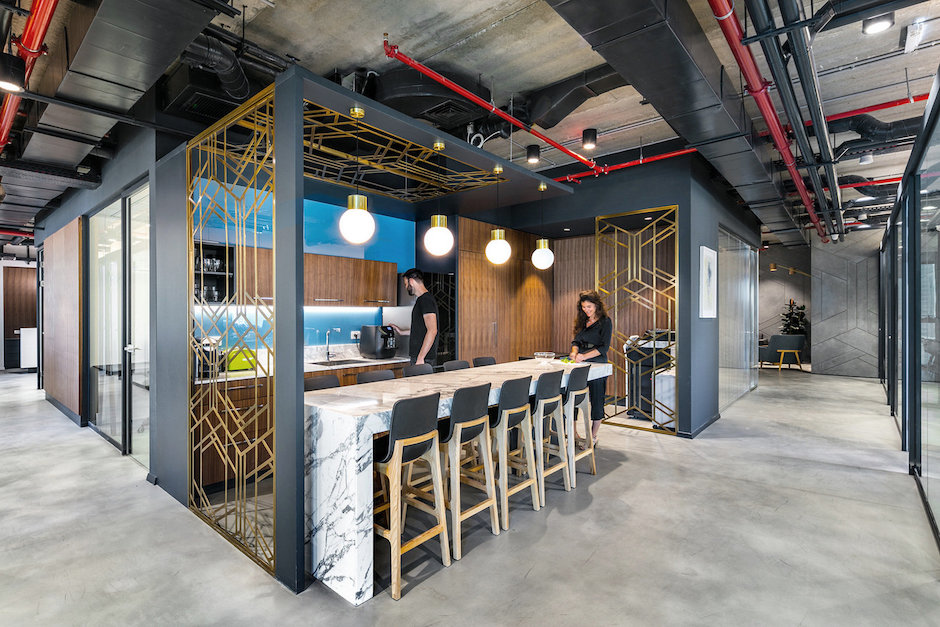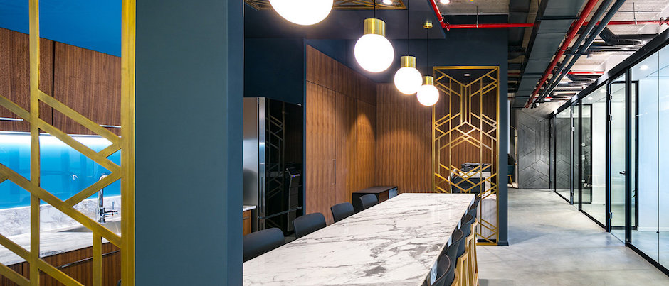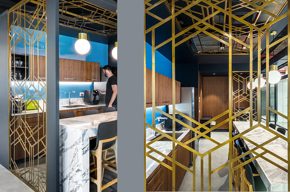 Tags:法律,以色列、材質對話、工業美學、Art Deco、精美時尚、藝術魅力、木紋、花白大理石、黃銅隔屏、幾何拼貼造型