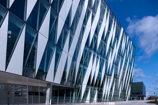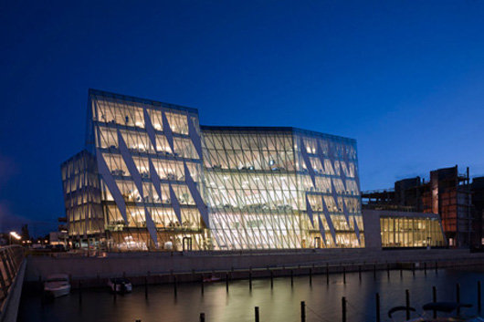 總部所在地原先是Tuborg釀酒廠的一部分,現(xiàn)在開(kāi)發(fā)成Tuborg海港區(qū)。該項(xiàng)目主要的特點(diǎn)是建造了一條穿越場(chǎng)地的運(yùn)河。沿著運(yùn)河到底端,舊倉(cāng)庫(kù)的木質(zhì)結(jié)構(gòu)面對(duì)著山形墻。